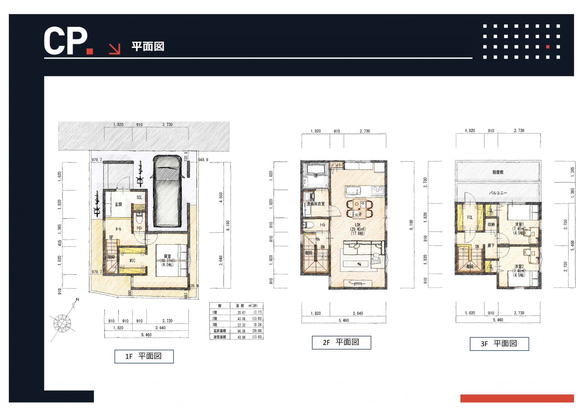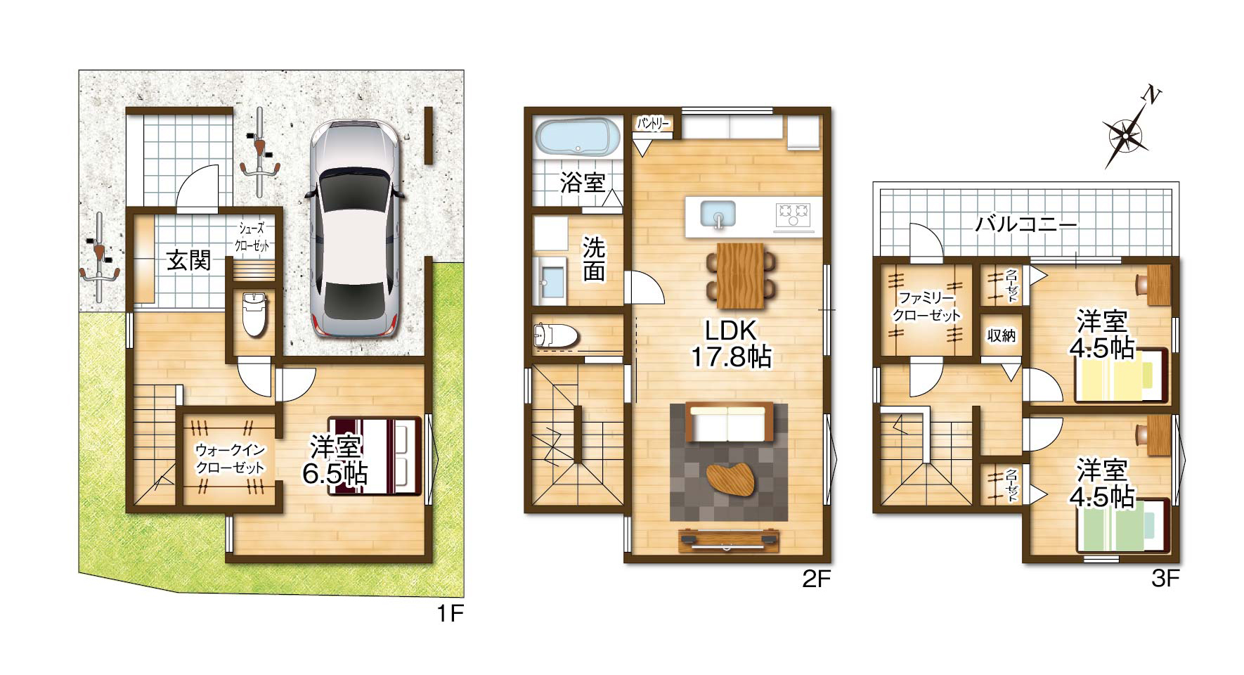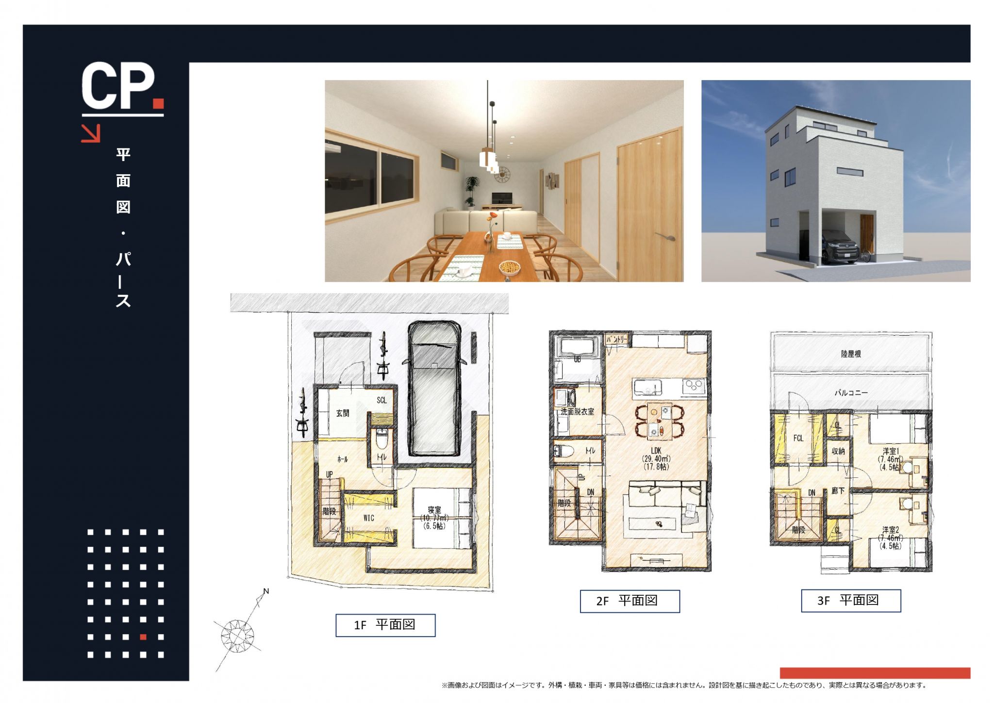 〇新築3階建て・駐車1台・3LDK 建物プラン例あり