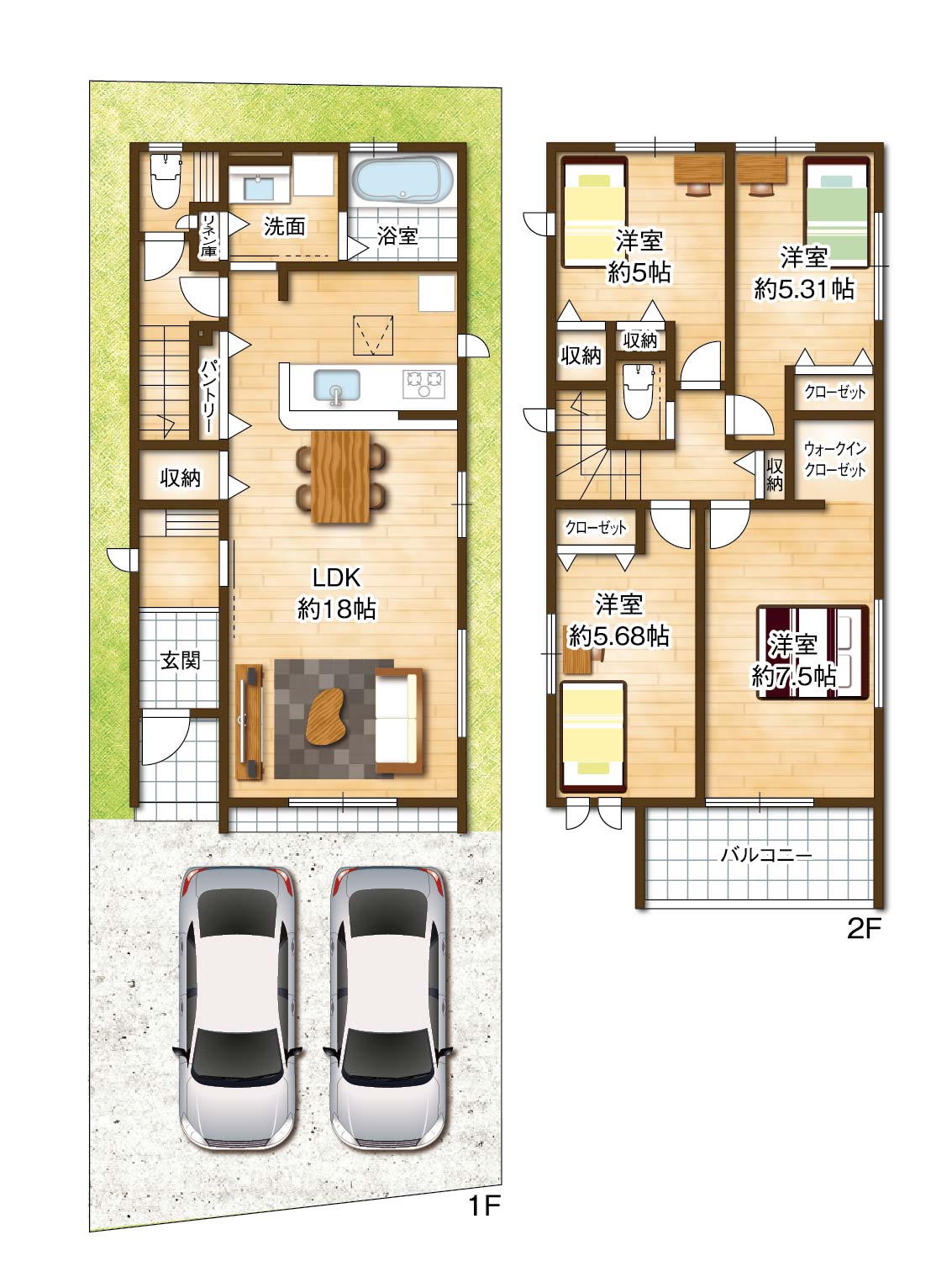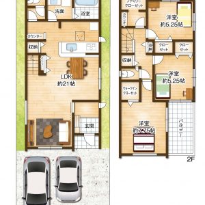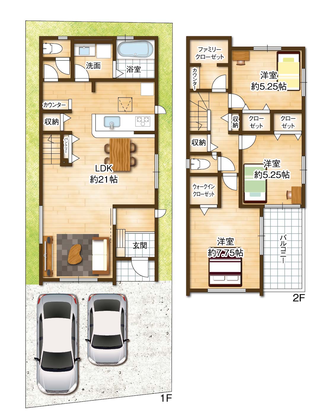 | 間取内容 | LDK21畳 洋室7.7畳 洋室5.2畳 洋室5.2畳 |