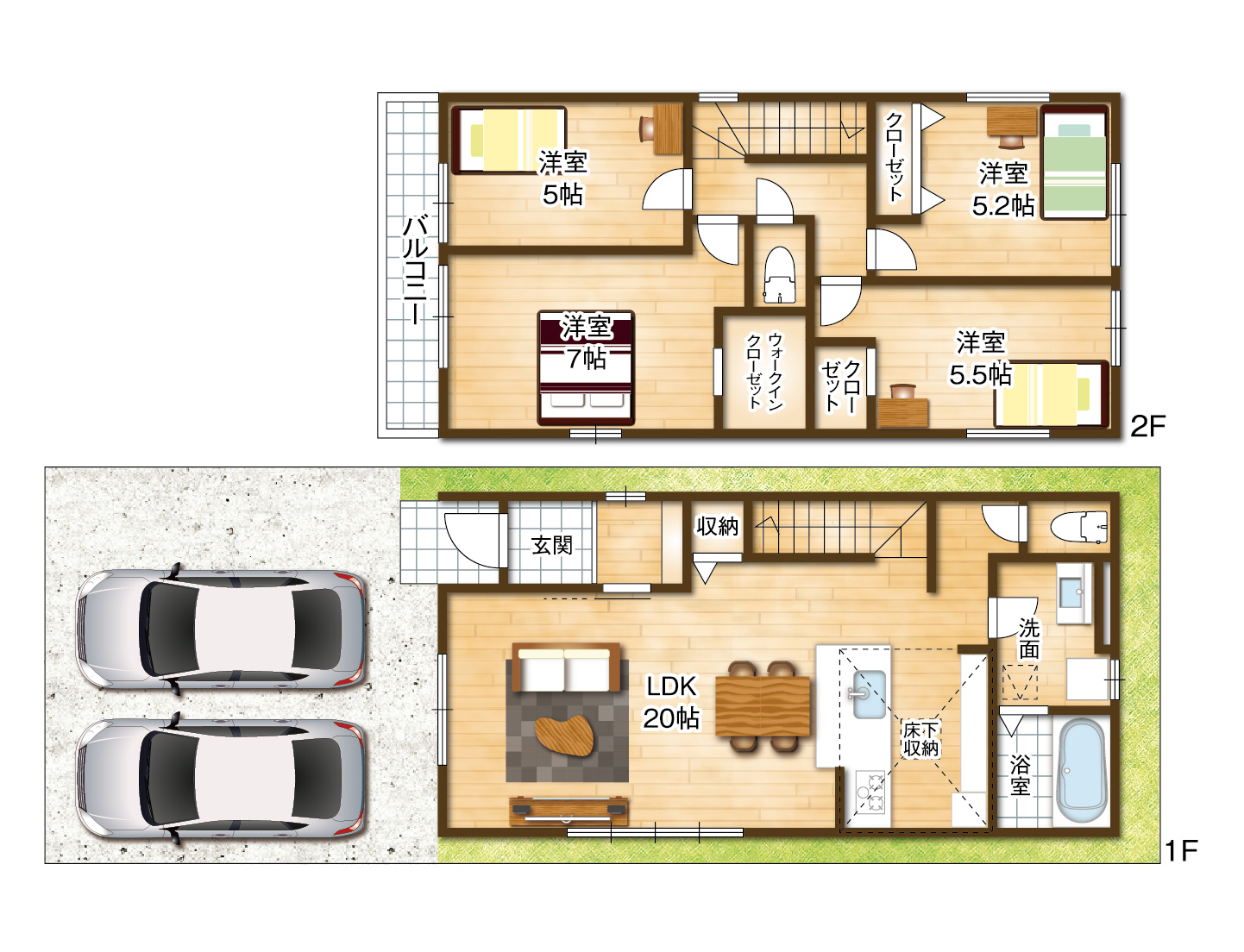 | 間取内容 | LDK20.0畳 洋室7.0畳 洋室5.5畳 洋室5.2畳 洋室5.0畳 |